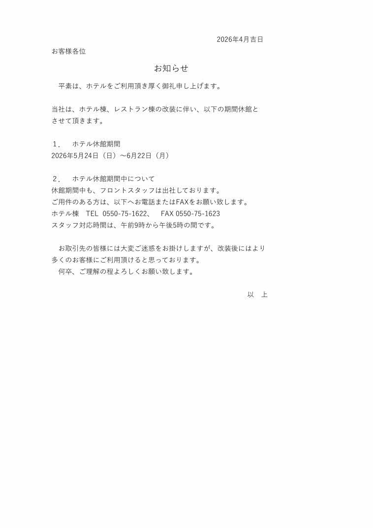 思い出に残る旅になりますよう、心をこめてお迎えいたします。
